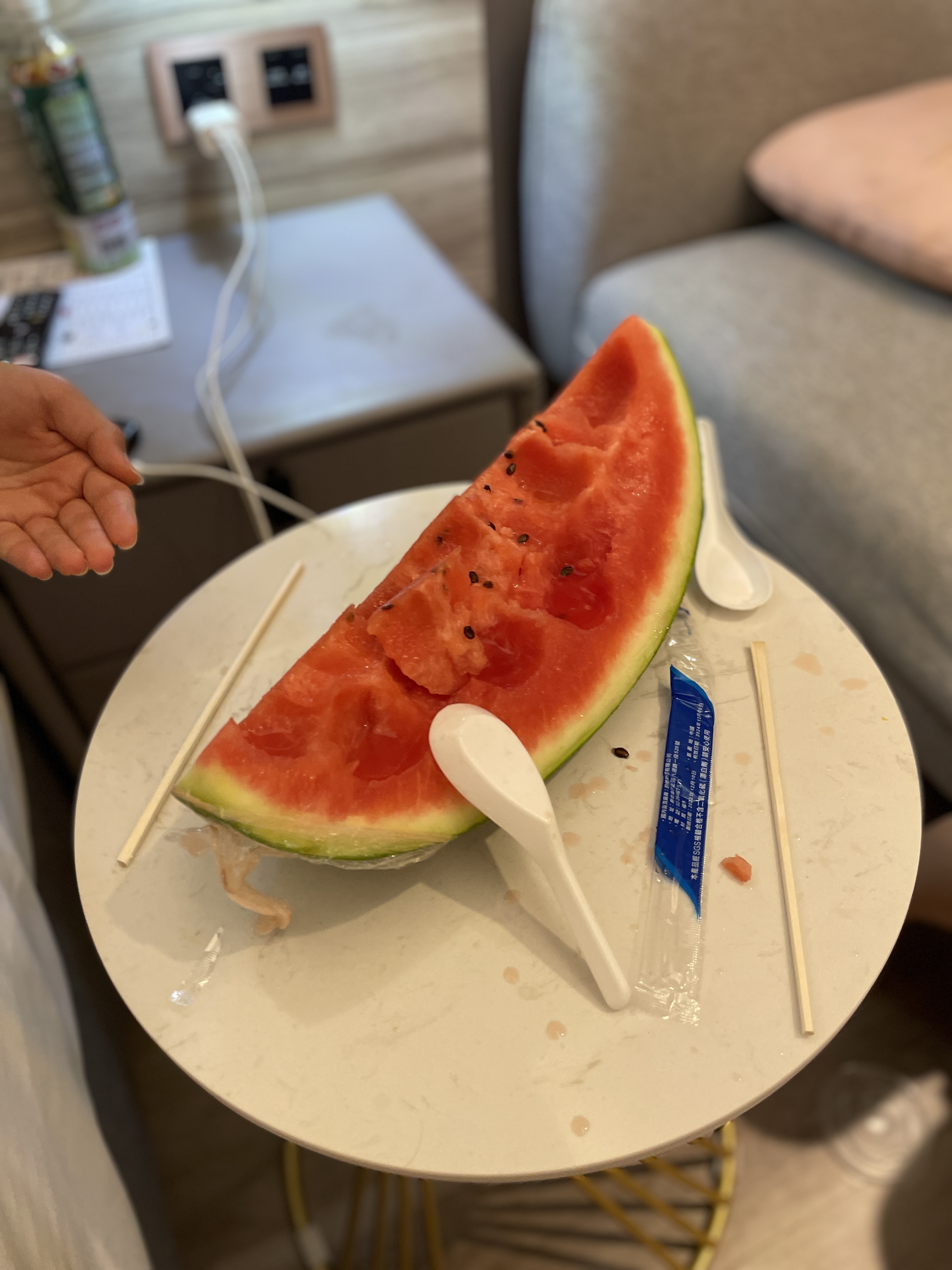 그리고 아침에 먹을 과일로 수박 당첨! 내 팔뚝만한 수박 1/4 쪽을 사와서 (칼이 없어서) 숟가락으로 퍼먹었다 ㅋㅋㅋ