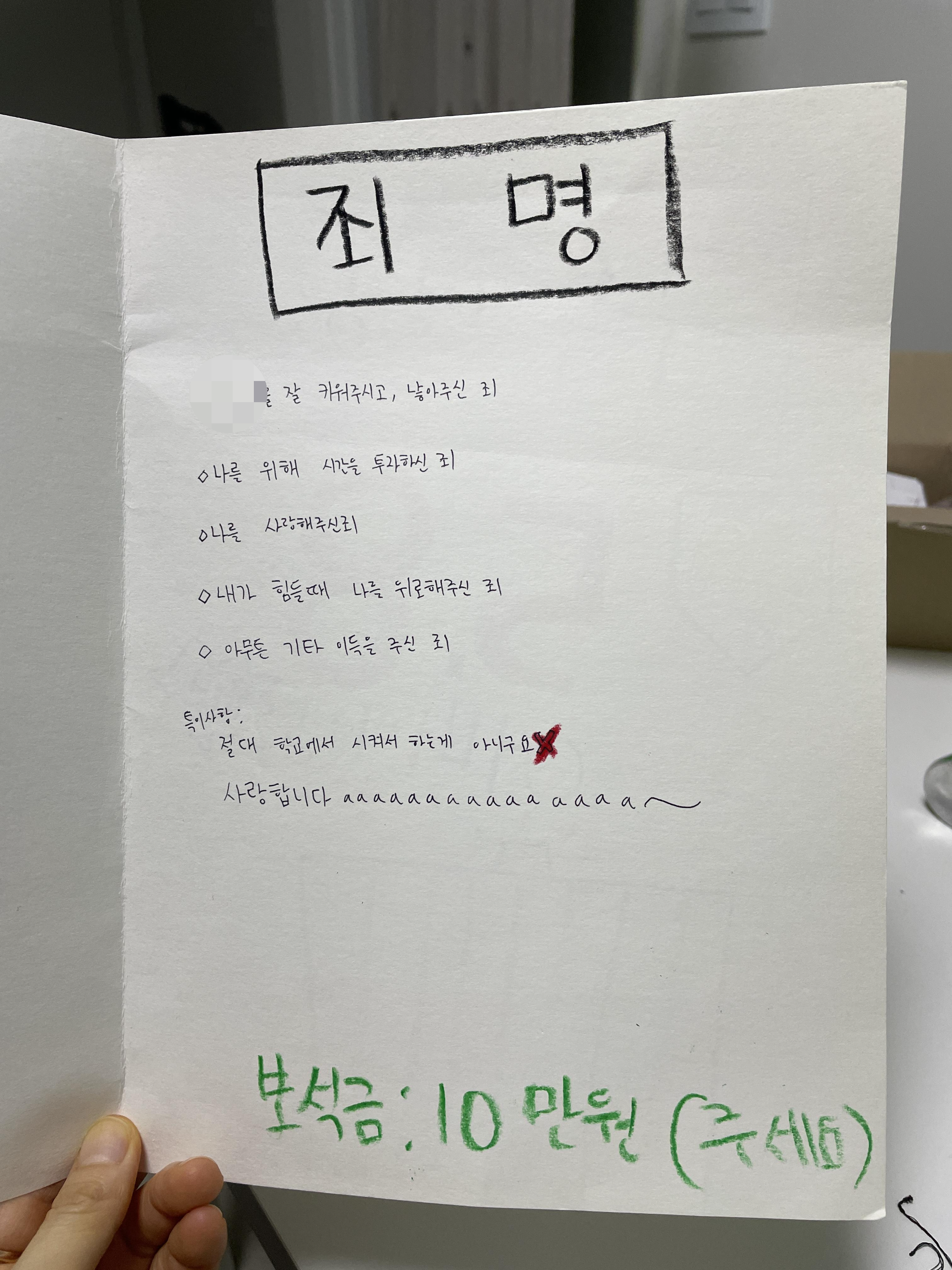 어버이날이니 도의상 그렇지 않은 죄목도 넣었을 테지만,